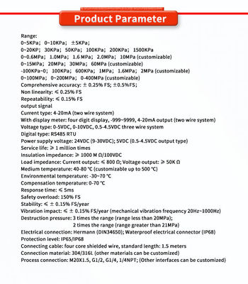 Руководство по покупкеЧтобы рекомендовать вам наиболее подходящий датчик, пожалуйста, сообщите нам ниже приведенную информацию. 1. Рабочая температура: -40 ~ + 125 °C? 2. Пробный диапазон? 3. Выход: 4-20mA, RS485 или другие? 4. Винт: G1/4, 1/4NPT, R1/4,М20*1.5Электрическое соединение: DIN43650, Packard, прямая проволока. ?