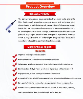 Специально разработанный датчик давления пористой воды для высоких измерений UBPT500-601TY
